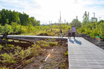 Verwunschen und urban zugleich präsentiert sich der Ort dem Besucher, dem dank eines sensiblen Erschließungskonzeptes der Zutritt gewährt und das Flanieren und Verweilen ermöglicht wird. Hier, inmitten von überwucherten Holz- und Stahlrelikten, wird Geschichte erzählt und ökologisches Bewusstsein vermittelt." (...)