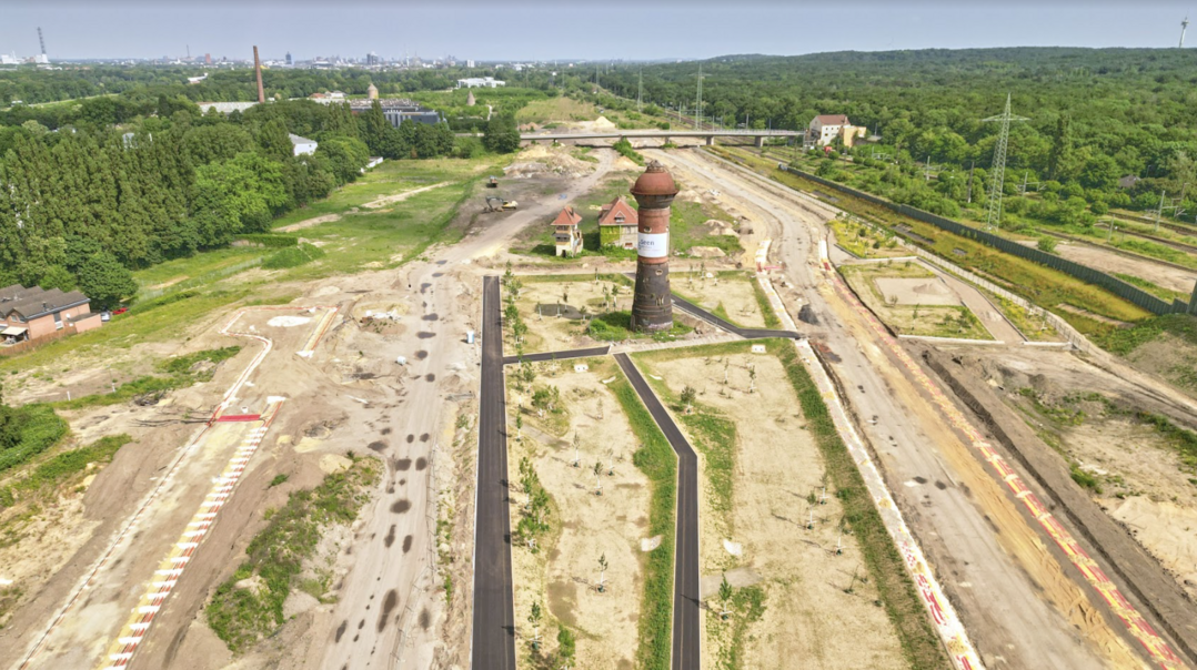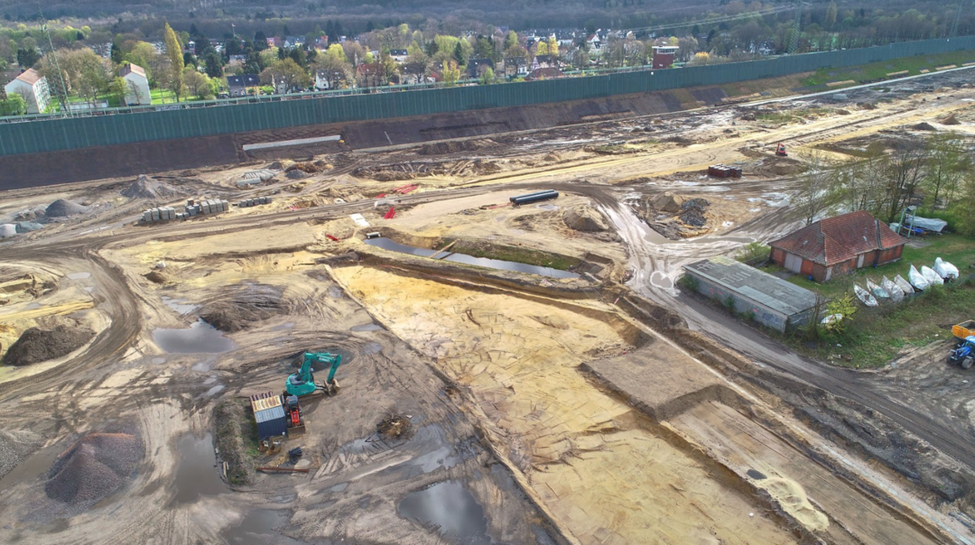 Rekord: Im neuen Wohngebiet Sechs-Seen-Wedau in Duisburg entsteht mit 2,6 km Länge die größte Klimawand der Welt – von Rau Geosysteme.