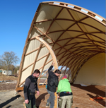 Ungewöhnliche Bauten entstehen derzeit auf dem Gelände der nordrhein-westfälischen Landesgartenschau in Höxter. Sie sehen aus wie ein besonders geformtes Kuppelzelt, sind aber nutzbar wie ein festes Gebäude. Die Strohboid-Pavillons kommen aus Österreich. „Die doppelt gebogene Konstruktion aus Baubuche zeichnet sich durch eine enorme Stabilität aus, die Stahl in den Schatten stellt“, sagt LGS-Geschäftsführerin Claudia Koch. „Bei so einem Anblick schlägt mein Herz als Bauingenieurin höher.“ Schon von weitem zeichnen sich die organisch geformten Pavillons im Zentrum des Weserbogens ab. Parabolisch-hyperbolisch nennen Fachleute das Design.