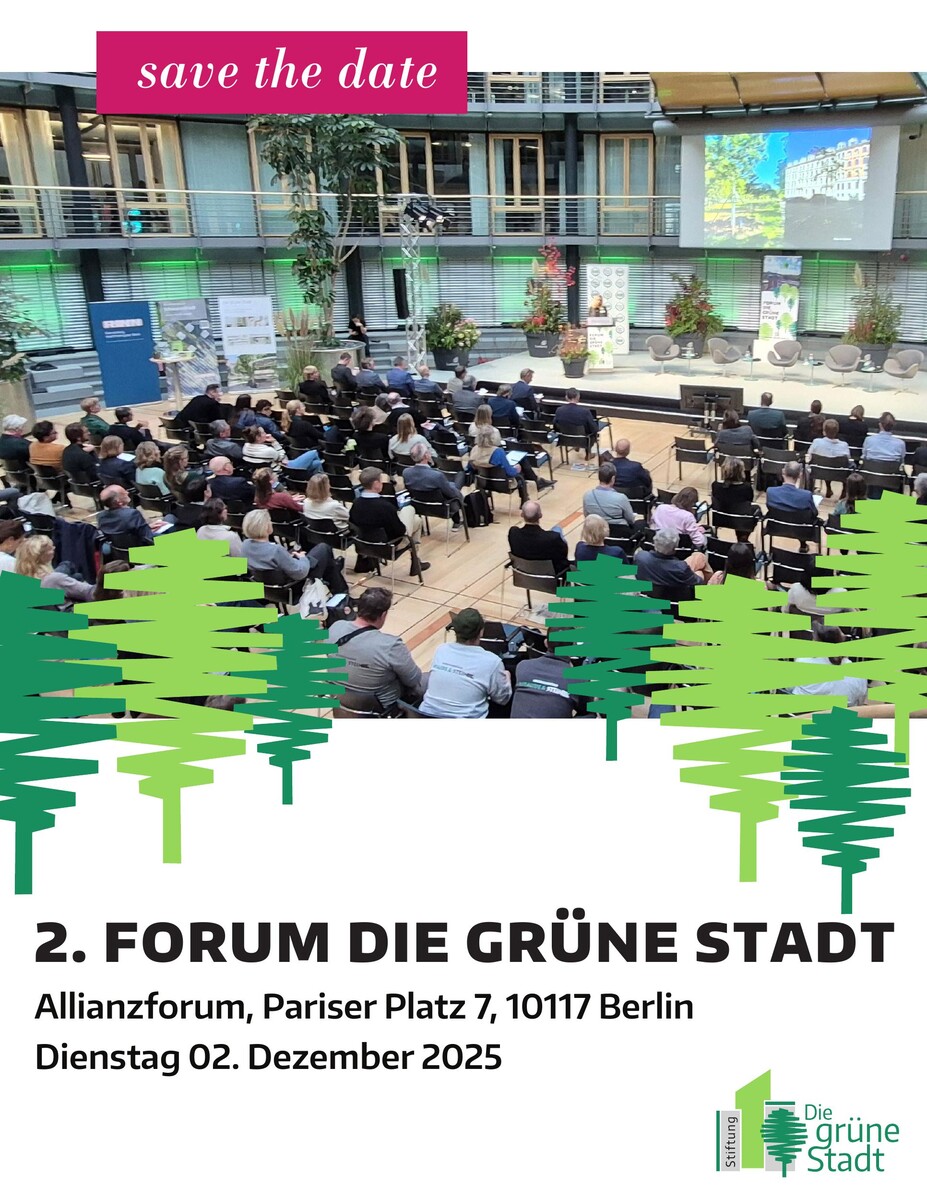 Zum zweiten Mal lädt die Stiftung Die Grüne Stadt zum gleichnamigen Forum nach Berlin ein. Unter dem Motto „Stadtgrün 4K“ will die Tagung angesichts der massiven Herausforderungen, vor denen städtische Grünflächen, Parks und Gärten in naher Zukunft stehen, Lösungsmöglichkeiten aufzeigen und nicht allein Problemanalyse betreiben.