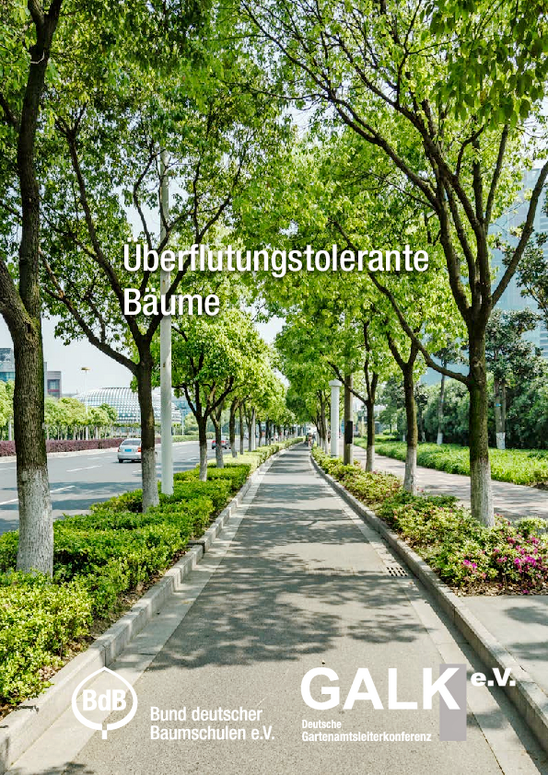 Die Deutsche Gartenamtsleiterkonferenz (GALK) und der Bund deutscher Baumschulen (BdB) haben gemeinsam eine Broschüre erarbeitet, in der Baumarten vorgestellt werden, die sich durch eine besondere Toleranz gegenüber zeitweiliger Überflutung auszeichnen.