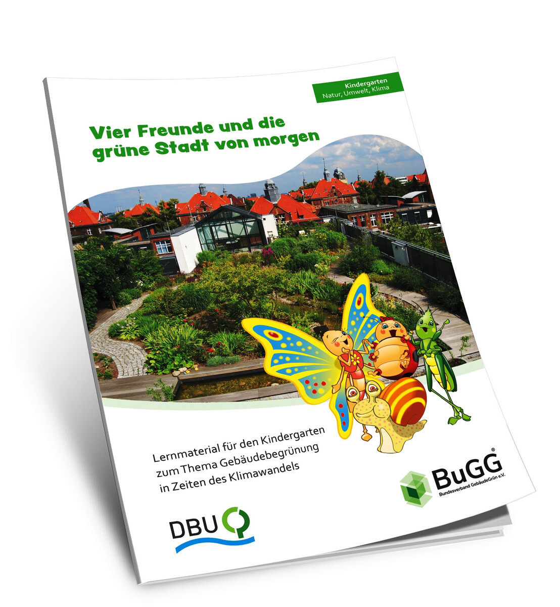 Für Erzieherinnen und Erzieher: Bei der 84 Seiten umfassenden Broschüre „Vier Freunde und die grüne Stadt“ dreht sich alles um vier tierischen Freunde. Mit ihnen lernen die Kinder spielerisch, dass Begrünung nicht nur Lebensräume für Tiere schafft, sondern auch ihre eigene Umwelt positiv verändert.