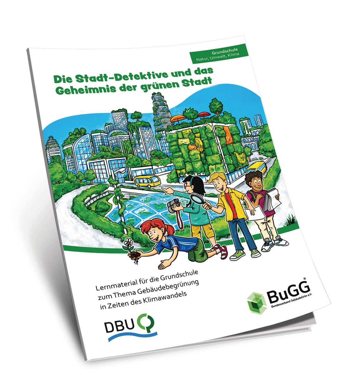 Für Lehrerinnen und Lehrer: Die 142-seitige Broschüre „Die Stadt-Detektive und das Geheimnis der grünen Stadt“ enthält Experimente, kreative Aufgaben und gemeinschaftliche Projekte für Schülerinnen und Schüler rund um das Thema Gebäudegrün.