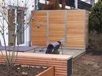 Der Raum auf unserer Erde wird knapper und teurer. Wir rücken näher zusammen. Im Haus erleben wir Intimität und Rückzug. Auf der Terrasse wünschen wir uns das auch, dem Ort der Entspannung und des Gartengenusses. IG-CUBE Terrassenschränke wurden genau für diese Aufgabe entwickelt. Mehrere Funktionen wurden als Ziel definiert: Sichtschutzwand, Schallschutz, Abstellraum maximal mit veränderbarem und ausbaufähigem Innenleben, unverwüstlicher Konstruktion, hochwertigem und nachhaltigem Materialkonzept Alu+Hartholz , schöner Gestalt, flexibler Konfiguration und einer riesigen Pflanzwanne, die Sie mit saisonaler (Blumenkästen) oder permanenter Bepflanzung und dazu noch mit Licht in Szene setzten können.