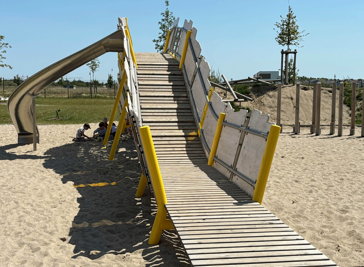von Play-Parc Allwetter-Freizeitanlagenbau GmbH erschienen am 15.08.2025Kokomo Landschaft und Stadtraum GmbH hat mit PLAYPARC als ausführendem Hersteller einen Ort geschaffen, der weit mehr ist als ein klassischer Schulhof. Neben beliebten Klassikern wie einer Viererschaukel und Trampolinen wartet der neu gestaltete Schulhof mit individuell gestalteten Highlights auf – eigens entworfen für die Bedürfnisse und die Identität der Schule. Die Kletter-Attraktion ist gleichzeitig eine begehbare Brücke, die Spiel und Bewegung verbindet. An einem Ende der „Brücke“ bieten eine Slackline und Bewegungsgeräte wie die beiden „Mokadi“ oder eine Up-Hill-Kletterrampe abwechslungsreiche Balanciermöglichkeiten. Hier lässt es sich aber einfach auch nur zusammen sitzen, liegen und chillen.