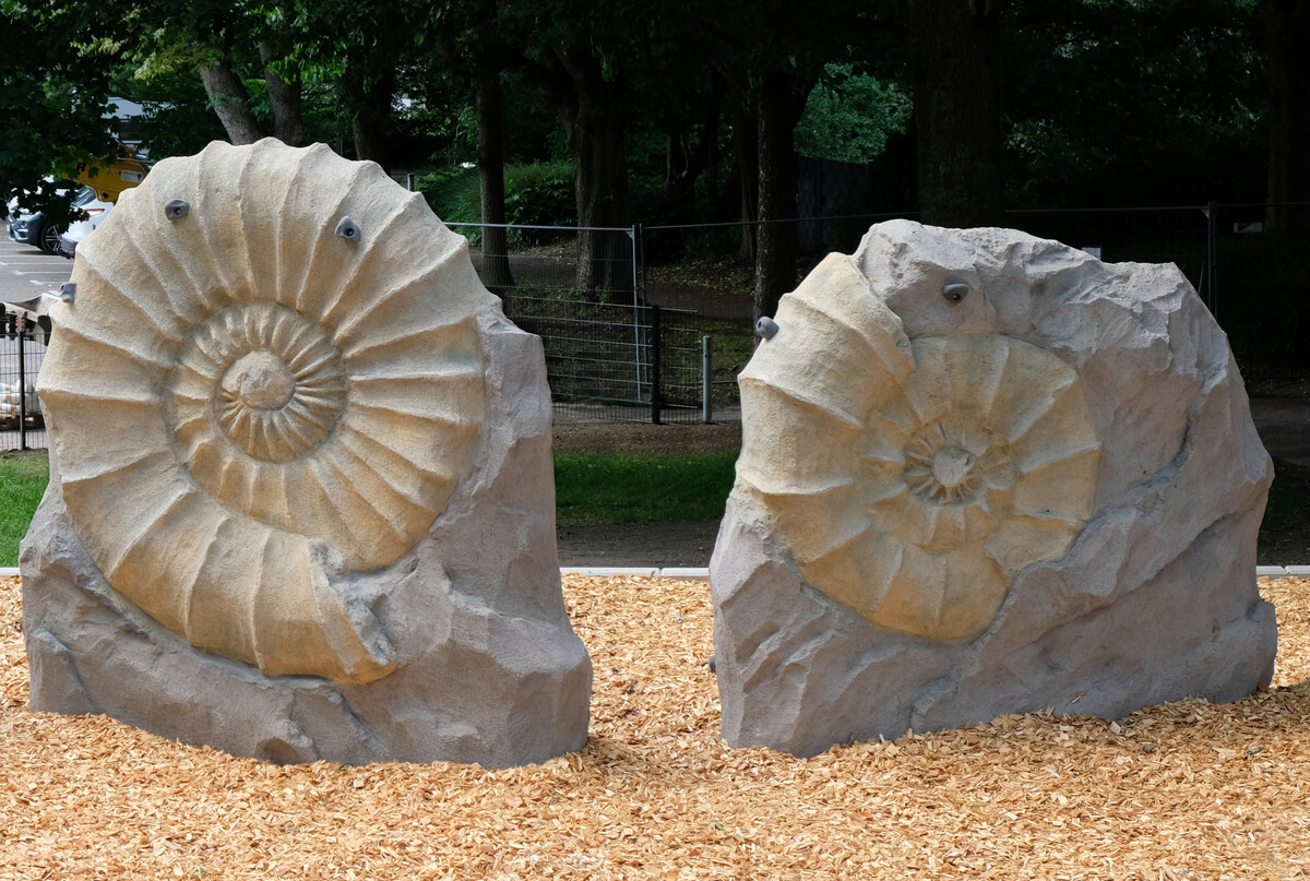 von X-Move GmbH erschienen am 01.10.2025X-MOVE hat bei der Neugestaltung des Spielplatzes in Essen-Kupferdreh die Nähe zum Mineralien-Museum aufgegriffen – entstanden ist ein Fossilienspielplatz mit einem Kletter-Highlight: Funde von Versteinerungen von vor vielen tausend Jahren gaben die Idee für die Nachbildung von Ammoniten als Kletter-Boulder-Spielskulpturen.