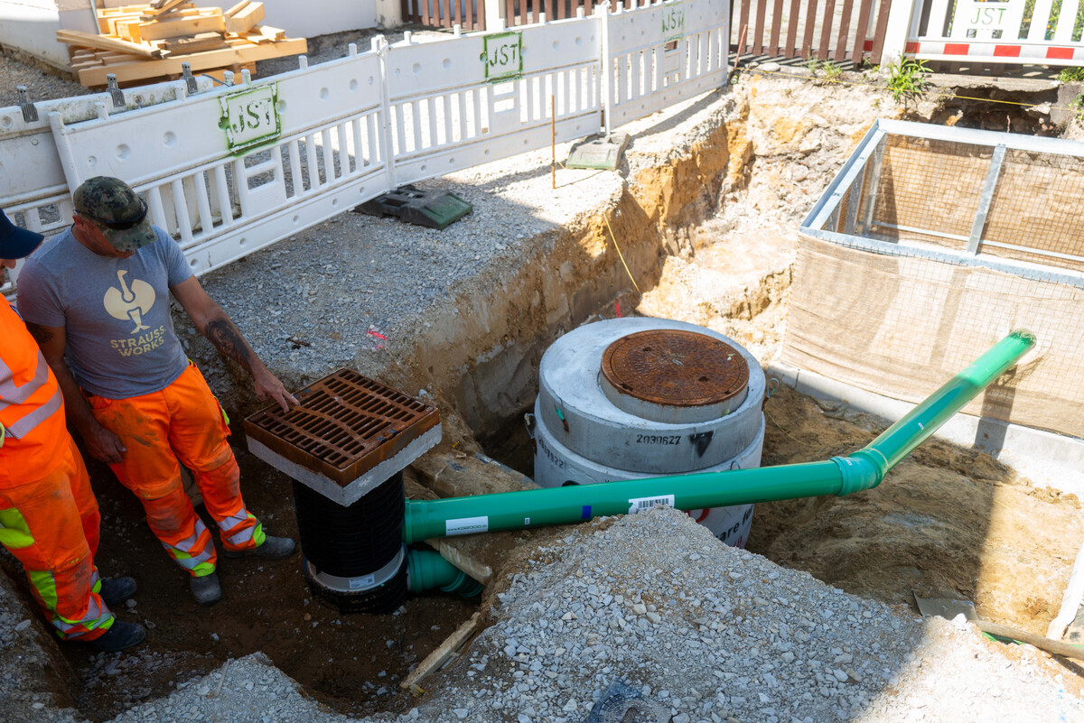 Wie die meisten bayerischen Kommunen verfügt auch Neustadt an der Donau über eine Mischkanalisation, über die das Regenwasser und Abwasser aus Haushalten und Gewerbe zusammen abgeleitet werden. Gerade bei Starkregenereignissen besteht die Gefahr, dass das Wassermilieu im Stadtgebiet erheblich beeinträchtigt wird. Auch hierfür fand ACO eine effiziente Lösung: Um zu verhindern, dass angestautes Schmutzwasser ungehindert in den Schwammstadtkörper zurückfließt, wurde zwischen Combipoint und Mischkanal ein Revisionsschacht mit Rückstauklappe installiert. Ein Schieber im Combipoint erlaubt zudem die einfache Umstellung vom Sommer- auf den Winterbetrieb, um während der kalten Jahreszeit tausalzhaltiges Wasser von den Bäumen fernzuhalten.