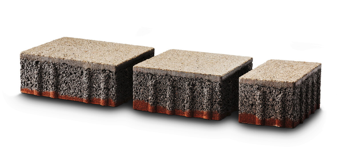 Um Städte widerstandsfähig gegen die Folgen des Klimawandels zu machen, hat GODELMANN den GDM.KLIMASTEIN entwickelt, einen versickerungsfähigen Pflasterstein der fünften Generation mit proActiveFunktionen für die Schwammstadt. Die Innovation: Der Stein besteht aus drei Schichten – einer Katalysatorschicht, die Luftschadstoffe an der Oberfläche reduziert, einer mittleren Speicherschicht zur Aufnahme, Speicherung und langsamen Abgabe von Wasser sowie einer Kapillarschicht. Diese Schicht ist weniger durchlässig, so wird mehr Feuchtigkeit im Stein gespeichert und zusätzlich vom Erdreich aufgenommen. Dies führt zu einer erhöhten Verdunstung und Kühlung des bodennahen Mikroklimas.