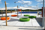 Der Sitzkreis Loop besteht aus 6 mm starkem, rotationsgeformtem Polyethylen und ist UV-beständig, robust und witterungsfest. Der Außendurchmesser ist oben 180 cm, Innenradius oben 100 cm, Sitzfläche und Höhe betragen einheitlich 40 cm. Das Sitz- und Spielgerät wird mit Bodenverankerung geliefert.