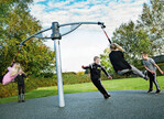 Für Kinder ist es wichtig, bereits frühzeitig durch Trainieren des Gleichgewichtssinns ein Gefühl für Schwerkraft und Balance zu entwickeln. Dabei unterstützt das "Saturn"-Karussell von Kompan für Kinder ab sechs Jahren. Bei dem Spielgerät handelt es sich um eine Art einachsigen Rotor, an dessen beiden Enden schwingende Stangen zum Anhängen oder Draufsitzen angebracht sind. Entweder durch die eigene Körperbewegung oder durch Anschieben können Kinder sich frei schwingend im Kreis drehen.