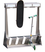 SkateboardZ von Burri bietet funktionale, robuste und ästhetische Lösungen zum Abstellen oder Aufhängen von Skate- und Longboards und lässt sich auch mit dem KickboardZ-Ständer kombinieren. Die Boards können einfach eingehängt und mittels Vorhängeschloss mit langem Bügel oder Drahtschloss gesichert werden.