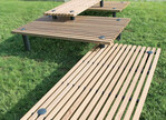 Die Sitzebenen Terrazzola sind vielseitig kombinierbar und können in nahezu jedem Winkel zueinander montiert werden. Die Sitzebenen sind in vier verschiedenen Breiten lieferbar. Die Bodenstützen und Stützmodule sind in der Länge aufeinander abgestimmt. Die serienmäßig unbehandelten Holzleisten (auf Wunsch auch lasiert) sind wahlweise aus Douglasie oder FSC-zertifiziertem Hartholz.