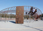 Der Kometenschweif eignet sich für Kinder ab circa 5 Jahren und befördert diese auf dem Kletternetz aus 16 mm Herkules in neue Sphären. Er eignet sich auch gut für Schulhöfe als Tribüne, zum Beklettern oder einfach nur zum Lümmeln. Er besteht aus glasperlengestrahltem VA Rohr und hat eine Fallhöhe von 2,92 m.
