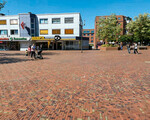 Die rotbraunbunte Objektsortierung "Walsum" von Hagemeister ziert den Kometenplatz in Duisburg. Die abwechslungsreiche Changierung der im Fischgrätmuster verlegten Klinker lässt den Platz von Dunkelviolett über Ziegelrot bis hin zu gelblichen Nuancen schimmern. Der kraftvolle Kohlebrand-Klinker wirkt harmonisch und fügt sich ins Bild des Stadtteils ein.