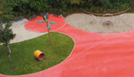 Mit rund 800 m² Fläche ist der markante rote Klecks das größte Spielgerät auf dem Spielplatz Beethovenstraße.