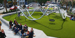 Im South Park in San Francisco steht eine Maßanfertigung der Berliner Seilfabrik, die in Form zweier nebeneinander verlaufender, gebogener Stahlrohre mit der hügelig angelegten Umgebung harmoniert.