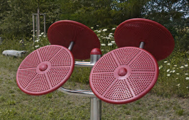 Der Schultertrainer auf dem neuen Bewegungspark in Dingolfing verbindet Akupressur und Bewegung.