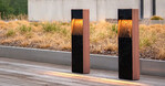 Die Vorder- und Rückseite der Außenleuchten bestehen wahlweise aus schwarzem Metall, weißem Carrara-Marmor oder schwarzem Marquina-Marmor. www.kreon.com