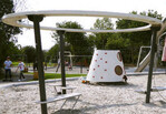 "The Saturn's Mine" vereint auf 5 m Durchmesser und 2,5 m Höhe verschiedene Elemente zum Sieben und Transportieren von Sand.