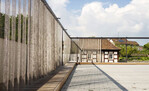 Lange Zeit vergessen und stiefmütterlich behandelt - die Zehntscheune mit Hofanlage im Herzen der oberfränkischen Stadt Schlüsselfeld. Vor der Sanierung nutzte der Bauhof die große Scheune aus dem 17. Jahrhundert als Abstellraum, jetzt wird das Gebäude wieder öffentlich genutzt, als Bürgersaal mit Trauzimmer. Für die Landschaftsarchitekten stellte sich im Wettbewerb 2010 die Frage, wie sie den im Stadtraum vergessenen Hof wiederbeleben könnten. Am Rand der Altstadt gelegen, fristete die Fläche jahrelang ein trauriges Hinterhof-Dasein, räumlich gefasst von der Rückseite des Rathauses, der vergessenen Zehntscheune und einer niedrigen Stadtmauer oberhalb des Stadtgrabens. "Ganz früh kam uns die Idee, den Stadtraum mit einem Vorhang zu...