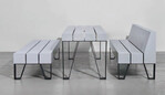 Sie eignet sich für Freiflächen ebenso wie für Innenräume. Pulverbeschichteter Edelstahl macht sie besonders robust. Auch eine Edelstahl-Schälbuchen- Kombination ist erhältlich. Die Füße können verschraubt oder einbetoniert werden.