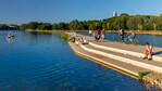 Die Nürnberger Freizeitanlage "Wöhrder See" aus den 70er-Jahren war in die Jahre gekommen, die alte Norikusbucht verlandet und die Wasserqualität schlecht. Mit dieser Ausgangslage starteten die Eichstätter Landschaftsarchitekten Hackl Hofmann und schufen auf 5,5 ha einen neuen Uferpark samt Badebucht und erzeugten damit eine hohe Anziehungskraft.