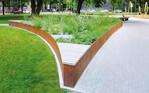 Das wurde zu einer gelungenen Symbiose aus Pflanzfläche und Stadtmöblierung. Zwei einladende Massivholz-Sitzflächen an zwei Enden des Hochbeets erweitern das Angebot an Sitzgelegenheiten im Park und ermöglichen die Erholung in angenehmer Atmosphäre.