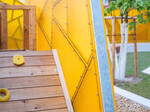 Der neue Spielplatz von Greenbox Landschaftsarchitekten im umgestalteten Hanns-Glückstein-Park macht mit Farbe glücklich - die sonnengelben Acrylglas- Elemente erstrahlen bei Sonnenschein wie Lichtkörper und locken zum Spielplatz. Die vertikalen Scheiben bilden das Rückgrat des Spielbereichs und greifen die polygonalen Grundrisse der angrenzenden Stadtvillen spielerisch auf.