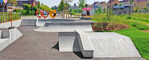 Der Skatepark entstand mit TÜV-zertifizierten Skateelementen aus Beton. Die modularen Fertigteile eignen sich sowohl für die Bowl als auch für die Skateobstacles und gehen ohne Übergangsbleche auf die Asphaltrollfläche über.