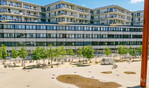 Vom ehemaligen Zollfreilagerplatz im Dreispitz Basel-Münchenstein zum urbanen Kunst- und Architekturraum - die Begrünung im Zentrum des neu gebauten Campus Dreispitz nimmt die Strukturen der gewerblichen Vergangenheit auf.