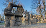 Als achte Station auf der SpreeMeile in Cottbus stehen diese drei Boulder-Felsen aus witterungsfestem Spritz-Beton der Lausitzer Felsenmanufaktur.