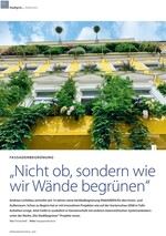 Fassaden sind heute die wichtigsten Flächen im urbanen Bereich", erläutert Andreas Lichtblau, Gründer und geschäftsführender Gesellschafter der 90deGREEN GmbH. Sein Begrünungssystem schafft an den vertikalen Flächen neuen Lebensraum. Das Komplettsystem mit einer Bauweise für vorgehängte und hinterlüftete Fassaden umfasst alle Komponenten ab dem Mauerwerk bis zu den Pflanzen. Diese wachsen ohne Anbindung an den Boden direkt an der Wand in einer erdfreien Mineralfasermatte und werden mit einer automatischen Bewässerung und Düngung versorgt. Die Versorgung ist in den Revisionsbereichen untergebracht und damit für den Betrachter nicht sichtbar. Lichtblau empfiehlt zusätzlich eine elektronische Fernsteuerung für Bewässerung und Düngung. Bereits drei Monate nach der Umsetzung ist eine grüne Wand mit 90deGREEN komplett zugewachsen. Das wandgebundene System funktioniert im Grunde an jeder klassischen Fassade, jedoch nicht an Glas- oder Metallflächen. Außerdem lassen sich damit alle Etagen begrünen. "Nur die Windverhältnisse können in der Höhe Grenzen setzen. Das kann zum Beispiel auch bei Häuserschluchten durch Windkanalbildung der Fall sein", ergänzt Lichtblau.