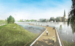 Für die BUGA 2025 entsteht aus einer ehemaligen Deponie ein Stadtpark. Eine Steganlage verbindet dieses neue Freizeitareal auf der gegenüberliegenden Warnowseite mit der Rostocker Altstadt.