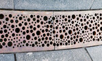 Der dänische Hersteller GH Form bietet ebenfalls spannende Roste für die Linienentwässerung - hier zum Beispiel WATER CELL mit tropfenförmig gemustertem Rost.