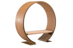 Das Planungsbüro bs LandschaftsArchitekten und der Gartengestalter Herrhammer erweiterten den Bogen für die Gartenschau um eine Sitzfläche. Die Bank mit schwungvoller Überdachung steht nun im Themengarten "Birkenflüstern". Der Bogen aus hochwertigem Cortenstahl, Edelstahl oder farbbeschichtetem Edelstahl wird in einem Stück gefertigt, das Objekt lässt sich schnell und unkompliziert aufstellen. Der Außendurchmesser von 240 cm bietet auch großen Personen ausreichend Platz. Die Sitzbank aus Hartholz stammt aus kontrollierter Waldbewirtschaftung und ist in den Tiefen 50 und 70 cm erhältlich.