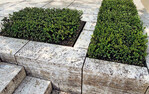 Im Innenhof des Quartiers dienen 3-Punkt-Traversen aus Aluminium mit über 12 m Höheals vertikale Kletterhilfen. Auf dem Boden sind sie jeweils mit einer Fußpunktplatte einbetoniert. Innerhalb der Traverse führt eine Wasserleitung (blau dargestellt) mit Nebeldüsen nach oben, die mit Schlauchedelstahlschellen fixiert wurde. Von den Nebeldüsen (Coolnet Pro 7,5l/h mit Tropfenstopp) sind immer zwei Pro Traverse vorgesehen.